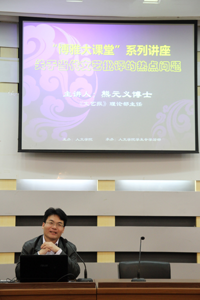 日前,人文学院特邀《文艺报》理论部主任熊元义教授为我校师生做了一场题为“当代文艺批评中的热点问题”的专题讲座,这也是该院举办的“博雅大课堂”系列讲座之一。