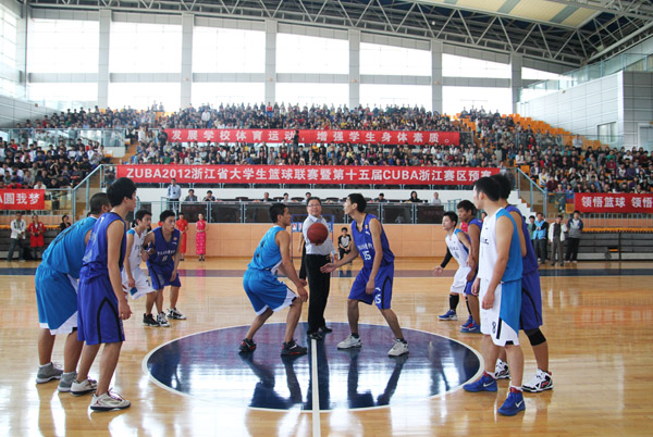 10月18日上午, ZUBA2012浙江省大学生篮球联赛暨第十五届CUBA浙江赛区预赛在我校体育馆隆重开幕。浙江省教育厅体卫艺处调研员徐建津,宁波市教育局副局长陈文辉、篮球协会主席徐定华、大体协主席戴本源,我校顾问、市篮球协会顾问王翊士,浙江省大学生篮球协会主席黄滨、副主席周勇、副主席汪玲玲、副秘书长许慧,我校党委书记孙惠敏、副校长李元益、党委副书记林长兴、副校长李羽等领导出席开幕式。参加开幕式的还有浙江大学、浙江工业大学、温州大学、宁波大红鹰学院等15所本科院校的男子篮球代表队。这也是我校升本后第二次承办此项赛事。