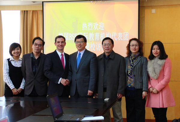3月6日下午,德国BSK国际教育机构执行总裁费康安(Kai-Arne Fiedler)一行三人来我校访问,校长助理高振强在集团大楼706会议室热情接待了费康安总裁一行。