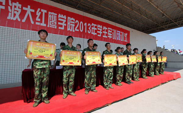副校长、校军训与征兵工作领导小组副组长李羽宣读了本次军训嘉奖令。经管学院、信息工程学院、基础学院荣获“先进集体”荣誉称号;第一团一营一连等23个连队获得“先进连队”称号、南区2号楼209寝室等70间寝室被评为“先进寝室”、王力行等658名学员被评为“先进个人”、俞奕秋等26名班主任被评为“优秀指导员”、毛敏等37名军训教员被评为“优秀教员”。到场领导为获奖先进集体和个人颁发了荣誉证书。