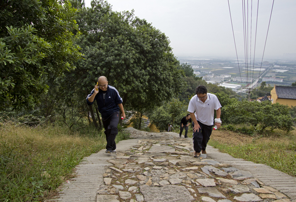 8:40,登山比赛正式开始。近百名男女运动员从北山步道入口出发,大家你追我赶、奋勇争先,行进在陡峭险峻的山路上。虽然在登山过程中大家都累得气喘嘘嘘,但在登上山顶俯瞰整个宁波风景时,身体的疲惫瞬间烟消云散,“会当凌绝顶,一览众山小”的豪迈之情油然而生。