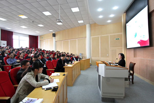 4月11日下午,由教师发展中心主办的“教育思想学习研讨”系列活动第三场专题报告会在阶梯教室202举行,校党委书记孙惠敏做了题为“学校办学定位的设计与实践”的主题报告。全体中层以上干部,各二级学院学科负责人、专业带头人、教研室负责人,管理骨干培训班全体学员及有关职能部门人员等到场聆听了报告。报告会由校长助理高振强主持。