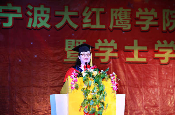 校党委书记孙惠敏致辞。她首先代表学校向顺利毕业并取得学士学位的2014届毕业生及其家长表示祝贺,并感谢全体毕业生为自己的成长成才、为学校的发展作出的所有努力和贡献。在这最后的离别之际,孙惠敏书记以三个真切期待和希望作为临别赠礼为毕业生送行:一是期待毕业生把感恩留给父母和师长。她认为,懂得感恩之人才能获得更多机会,才能获得更大成功。为此,她希望毕业生在走上社会后,不忘父母的养育之恩和师长的教诲之恩,时时铭记于心;二是期待毕业生把祝福留给母校和同学。她说,母校用15年的时间证明了自己的自信、自强,也将在未来的所有时间里坚持不懈地不断提升人才培养的能力和水平。她强调,无论什么时候,母校永远是大家的坚实后盾;三是把自信和精彩留给自己和岁月。她说,精彩就是在人生路上不断地追求优秀和幸福,希望毕业生自信面对自己、专注克服困难,成就未来的无限精彩。最后,她提议全场人员用十秒时间的热烈掌声为毕业生精彩的大学岁月喝彩,为全体毕业生未来十全十美的幸福人生祈福。顷刻,如潮的掌声响彻整个会场。