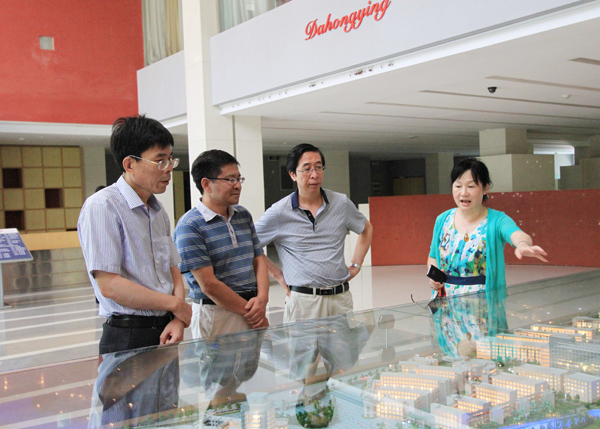 李春林副总编(左一)参观我校校园建设模型