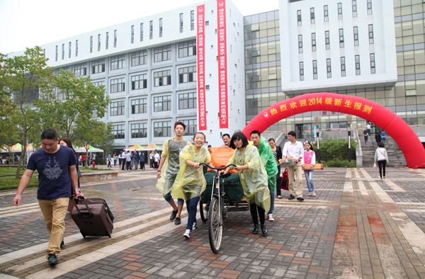 9月20日、21日,是我校2014级新生报到的日子。沉寂两个月的杭州湾校区人声鼎沸、彩旗飘扬,火红而又热烈的气拱门在艳阳下喜迎4800余名“新主人”的到来,而喜庆的迎新标语满载全校师生温馨的问候。校园内处处充溢着笑声和热情,一派生机盎然。