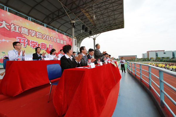 金秋十月,美丽的杭州湾校区处处洋溢着青春朝气,焕发出勃勃生机。10月8日上午,我校2014级新生开学典礼在杭州湾校区田径场隆重举行,校领导卢秉恒、孙惠敏、王云儿、李羽、高振强、沈云慈、许锁迪、何秋叶,各二级学院和有关职能部门负责人出席了开学典礼。典礼由副校长王云儿主持。
