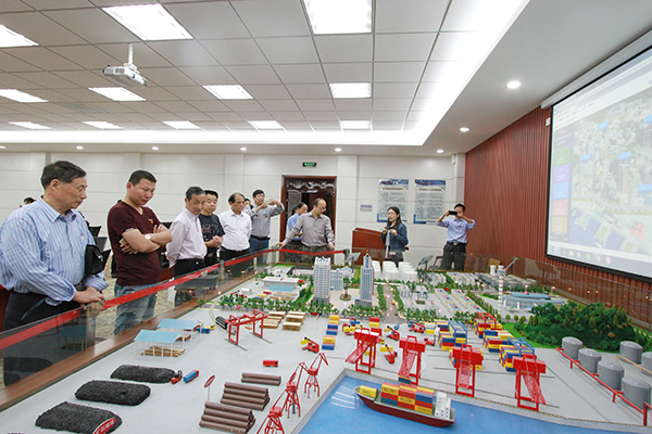 南昌理工学院副校长陈志龙(右三)等正在参观大宗商品物流实验室