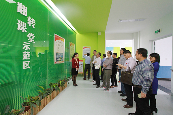 南昌理工学院副校长陈志龙(左六)等正在参观翻转课堂示范区