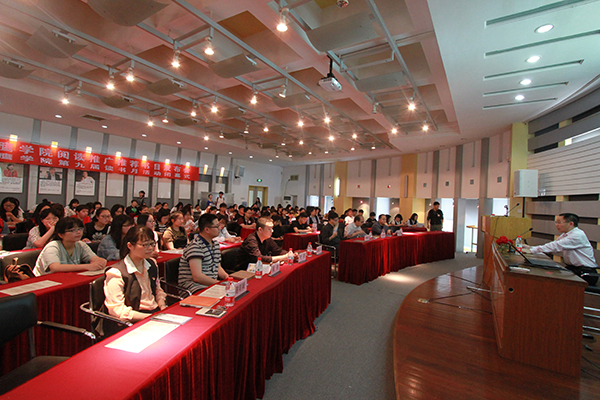 人文学院院长王臣申宣读了我校阅读推广推荐书目(2016版)。他说,该书目是借鉴国内外各大高校推荐书单并经过我校专家学者的反复推敲论证而产生,是任何一个受过高等教育又享有较高精神追求和文化素养的人都应该深入阅读的书籍。他引用杨绛先生的话“你的问题主要在于读书不多而想得太多”,并号召大家“读书吧!”。