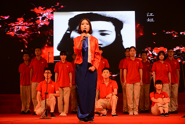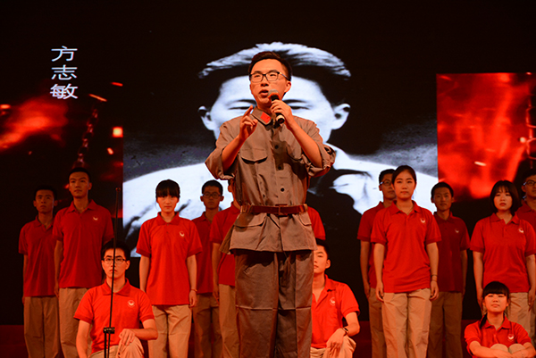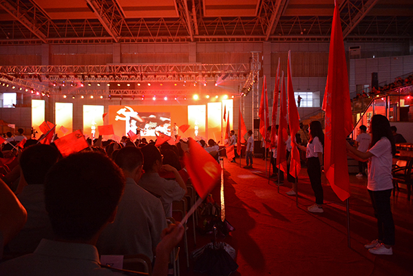 诵诗会“尾声:青春的誓言”,台上台下红鹰学子共同挥舞党旗,形成一片红色海洋,同时全体起立共同朗诵《少年中国说》,将本次诗会再次推向高潮。迈入新时代,“少年强则国强”,红鹰学子慷慨激昂的朗诵为中国共产党95周年献上了由衷的祝福。