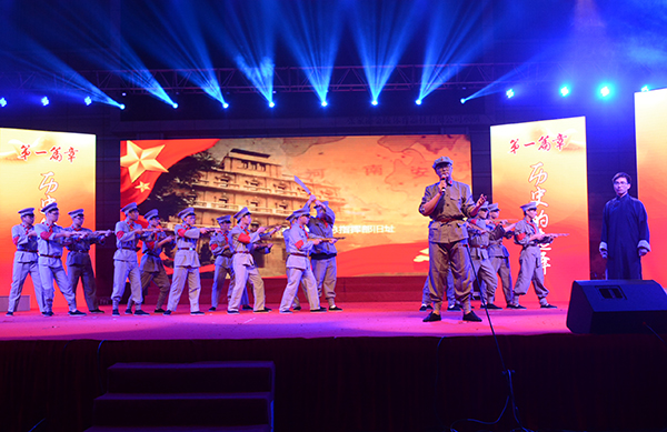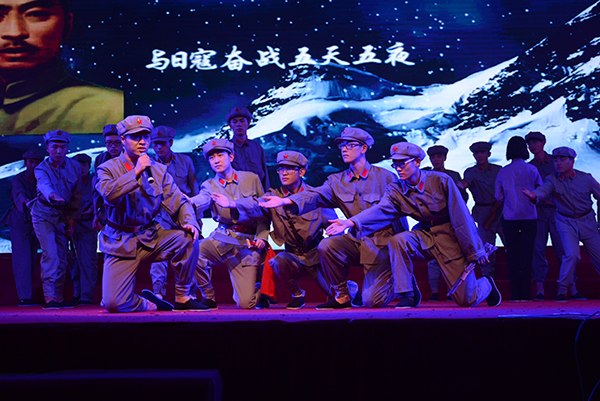 本场诗会以“历史的选择”、“浴血奋战”、“和平与胜利”三个篇章回顾中国共产党的光荣岁月。《南湖的船》、《艰苦岁月》、《翻身农奴把歌唱》等节目再现了中国共产党不同历史时期的重要抉择与伟大胜利。演员们通过一位位革命烈士的演绎,让现场师生仿佛置身于战乱纷飞的年代,充斥着浓浓的爱国主义情怀。在朗诵中,同时穿插播放了相关历史题材视频。其中,南京大屠杀短片的播放进一步激发了师生们爱党爱国的热情;开国大典的视频播放将本场诵诗会推向高潮。