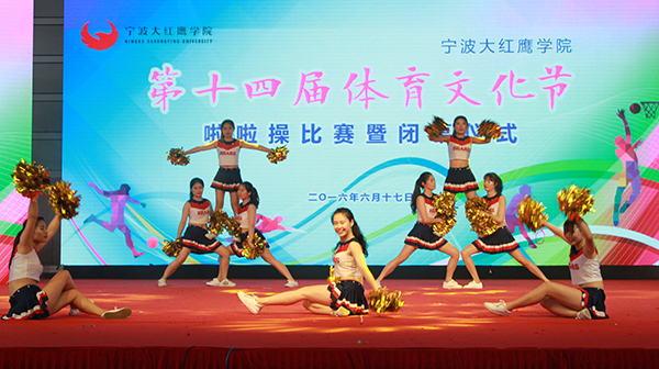 接着,精彩的啦啦操比赛正式开始。经过激烈角逐,艺传学院代表队获得第一名,工商学院、机电学院代表队分获二、三名。