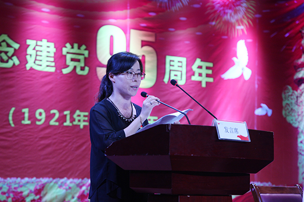 会上,孙惠敏作了重要讲话。她首先代表学校党委热烈祝贺中国共产党成立95周年,同时向全校党员致以节日的问候。接着,她回顾了我党95年的光辉历程,以及我校十五年来党建工作和事业发展历程。15年来,全校上下始终坚守信念、努力拼搏、攻坚克难,以百折不饶、超越自我、不断追求崇高目标的学校精神,遵循大学发展规律,服务区域经济发展,为社会培养了一大批高素质应用型人才。