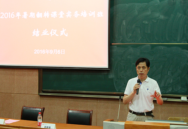 9月6日下午,我校2016年暑期翻转课堂实务培训结业仪式在阶梯教室202室举行。副校长李羽出席结业仪式并做讲话,校长助理高振强主持仪式。