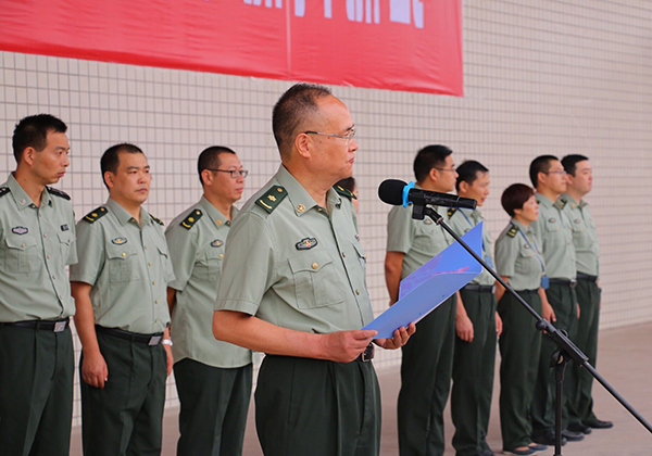 校党委副书记、大学生军训与征兵工作领导小组组长林长兴宣读军训师成立及其干部任命文件