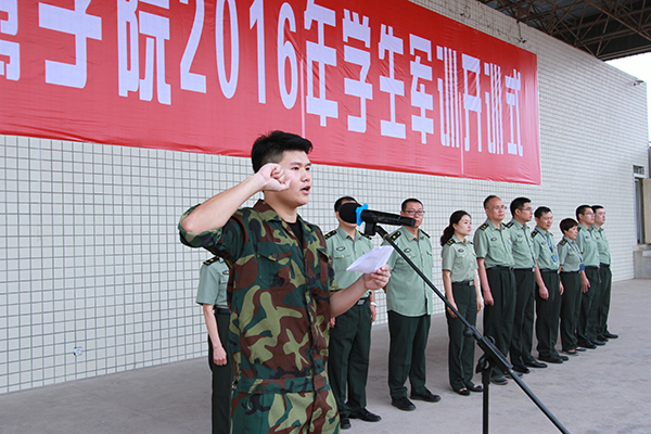 9月10日上午,伴随着激昂奋进的义勇军进行曲,我校2016年学生军训开训式在校本部运动场举行。校党委副书记、大学生军训与征兵工作领导小组组长林长兴,学工部、武装部、各二级学院党委负责人出席开训式。全体军训教导队队员、参训学员身着戎装、英姿飒爽,排着整齐的队列参加了开训式。