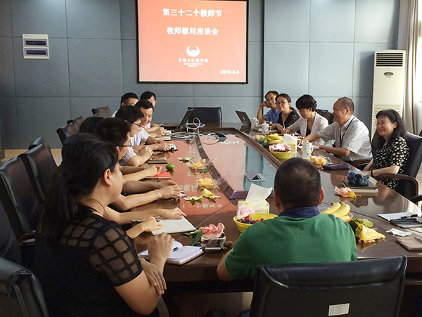 9月8日、9日,在第三十二个教师节来临之际,我校党委书记孙惠敏、副书记林长兴带领校工会、人事处等部门负责人,走访了二级学院,与教师代表座谈,并向教师们送上了节日问候和祝福。