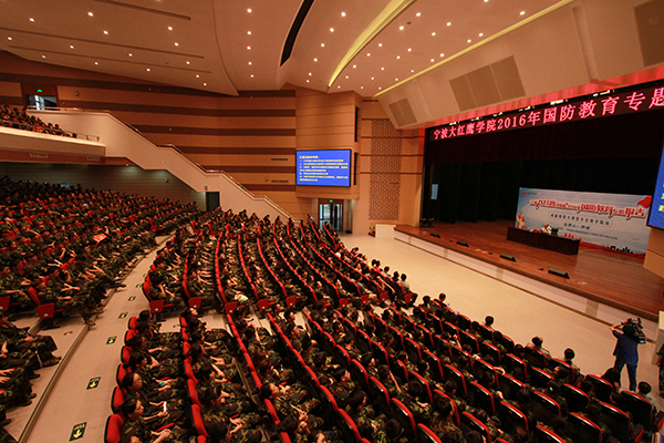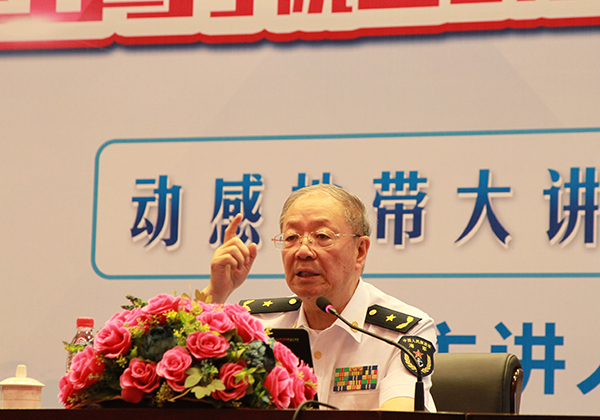 9月13日上午,著名军事专家尹卓少将莅临我校杭州湾校区,在大礼堂为新校区2015级参加军训的学员和承训教官作了题为《我国周边安全形势与对策》的专题报告。
