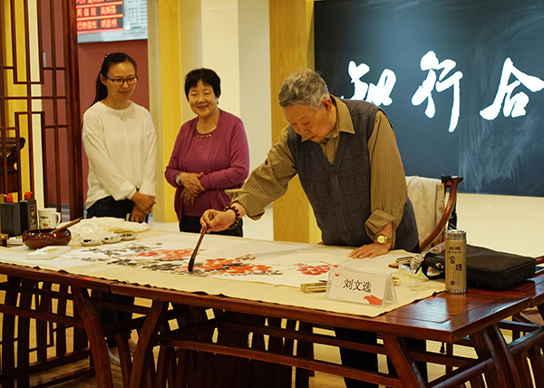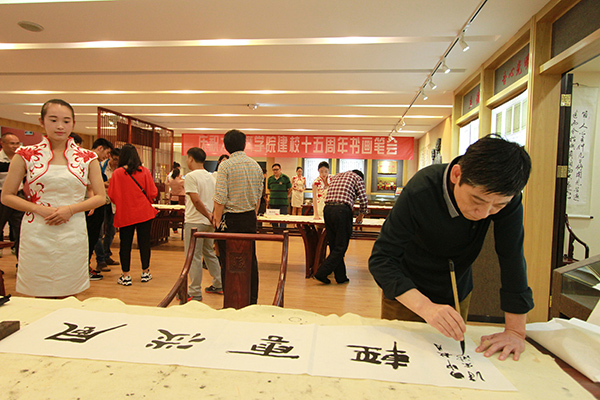 作为庆祝学校建校15周年活动之一,10月20日下午,宁波市美协名誉主席刘文选,市文联原党组书记、市书协副主席邹大鸣等七位宁波书画名家齐聚我校“阳明讲堂”,举行了“庆祝大红鹰学院建校十五周年”书画笔会。
