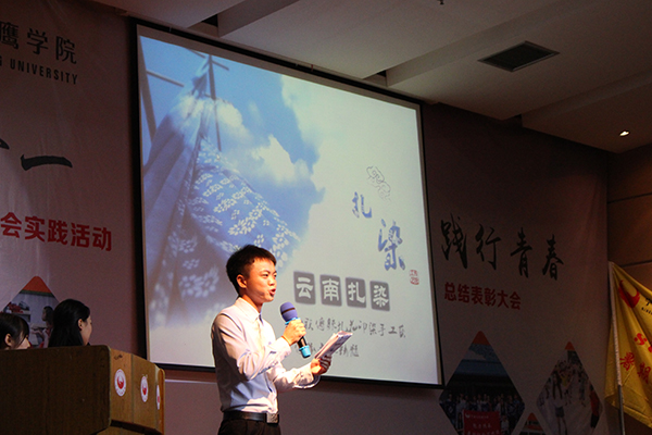 会上,“魅力传承”暑期社会实践团、“寻甬城正能量”暑期社会实践团和“Sunshine”暑期社会实践团三支优秀实践团队分别进行了成果汇报,他们以多种形式展示了社会实践活动取得的成果和精彩瞬间,并与大家分享了社会实践的心得体会。