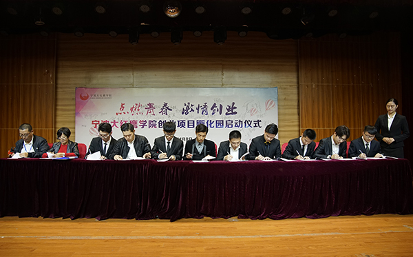 仪式上,创业项目孵化园负责人介绍了园区的建设概况以及入驻企业(项目)的基本情况。入驻园区的27个创业项目负责人签署了入园协议,创业学生代表王子康同学作了发言。