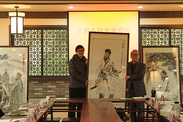 研讨会上,首先举行了简短的捐赠仪式。甘肃省庆阳书画院书记、副院长马晔宁向我校捐赠了其根据王阳明先生生平主要事迹创作的四幅国画。