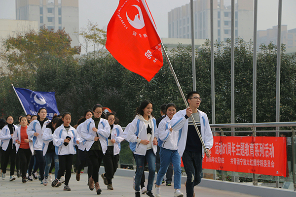 随后,由各级团学组织组成的20支方队参与了“接力一二·九,传承爱国情”的校内阳光跑活动。同学们高擎团旗、校旗,在寒风中飞奔着,坚持跑到终点,他们的爱国热情也吸引了不少围观同学的加油助威。长跑结束后,学生代表冯乐华同学向全校学子发出倡议:弘扬“一二·九”精神,争做爱党爱国、理想远大的红鹰青年;争做勤奋学习、本领过硬的红鹰青年;争做勇于实践、创新创业的红鹰青年;争做弘扬新风、品行高尚的红鹰青年,为自我成才、学校发展助力。