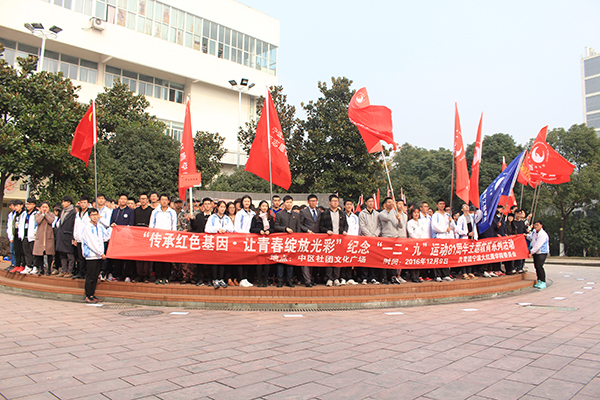 今年12月9日是“一二·九”爱国主义运动81周年纪念日。当天中午,校团委在本部校区中区创业文化广场举行了隆重的纪念活动。有关部门负责人和300余名师生代表参加了活动。