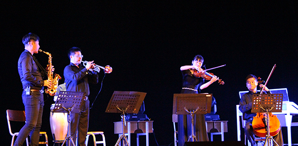 演出以口笛演奏《云雀》开场,表现了山林中云雀争鸣的精彩景象,高超的颤音绝技一气呵成,赢得了观众们的阵阵掌声。随后,演奏者们还为千余名观众带来了琵琶弹奏、笛子合奏、双排键独奏、小号吹奏等精彩的表演。小提琴、大提琴、钢琴三重奏《苗山随想》扣人心弦,双排键演奏《加勒比海盗》让人仿佛置身蔚蓝的大海……音乐会的曲风时而高亢激扬,时而委婉深沉,令观众们沉醉其中。演出中,艺术家们结合乐团中西合壁的特色,采用民族乐器和西洋乐器的二重奏、三重奏、四重奏、五重奏直至多件乐器重奏等多种表演形式,充分展示了其高超的演奏技巧和深厚的艺术修养。音乐会尾声,在场师生纷纷起立,用最热烈的掌声向演奏家致敬,向音乐致敬。