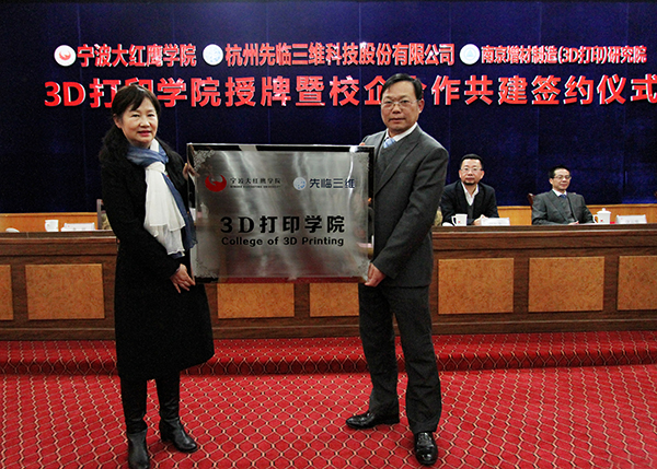 12月20日,我校3D打印学院授牌暨校企合作共建签约仪式在图书馆六楼报告厅举行。我校与知名企业杭州先临三维科技股份有限公司、南京增材制造(3D打印)研究院签订合作共建协议,携手建成浙江省首个3D打印学院。
