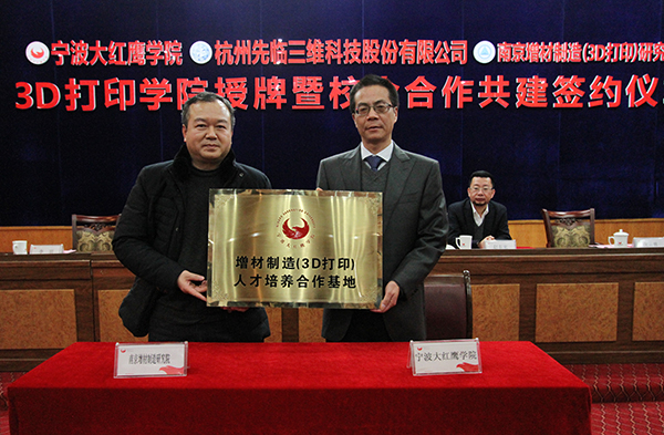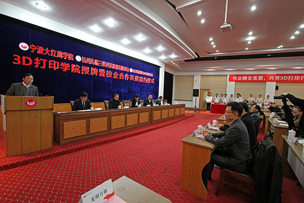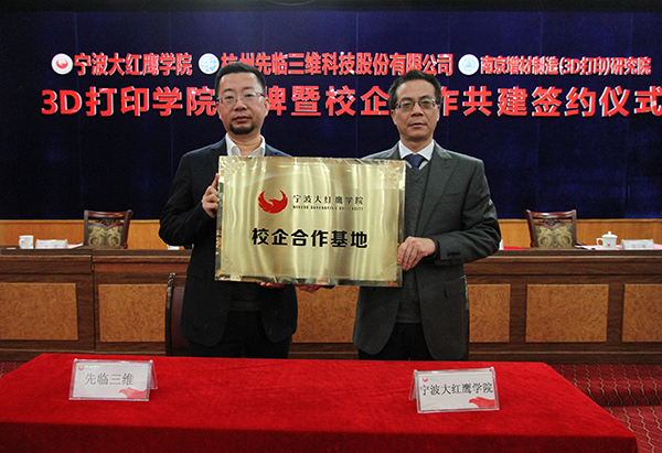 据了解,《国家增材制造产业发展推进计划(2015-2016年)》将3D打印技术发展规划推到国家战略高度,特别强调了加快3D打印技术人才的培养,鼓励高校与企业联合办学或建立3D打印人才培训基地。3D打印学院建成后,校企合作三方将重点开展如下工作:在人才培养方面,3D打印学院立足浙江、面向长三角3D打印产品制造企业、3D打印服务中心以及应用3D打印技术的创新型企业等,依据机电学院现有专业基础,拟增设工业设计专业3D打印与设计方向、机械设计制造及其自动化专业增材制造方向、机械电子工程专业和电气工程及其自动化专业3D打印设备及其控制方向,着力培养具备3D打印、机械、控制、工业设计、材料等方面的基础理论、基本知识与应用能力,能从事逆向工程、3D打印创新设计、3D打印设备研发、3D打印设备故障检测与排除、3D打印设备维护与管理等工作,具有创新精神、创新创业能力和良好的职业素养的高素质应用型人才;在3D打印行业相关应用研究方面,鉴于3D打印技术已经逐步渗透应用到多个领域,3D打印学院将选择其中几个领域进行重点研究——工业制造、文化创意、生物医疗、消费品、个性化定制、航空航天等;在3D打印社会服务方面,开展面向学生的3D打印创客培训;开展3D打印行业认证的社会化培训;开展3D打印技术科普推广,并为宁波地区企业提供3D打印服务,借此开展相关专业的实践教学;积极创造条件,开展3D打印试点职业资格的申报(宁波市)等。