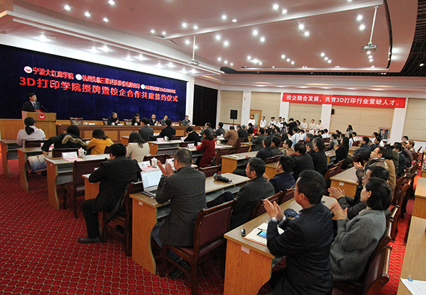仪式上,机械与电气工程学院、3D打印学院院长赖尚丁首先作了建院报告。他说,新建的3D打印学院是我校机电学院下属的一个特色学院。校企合作三方将以“协同创新、共享资源、探索合作、促进共赢”为理念,共同组建特色学院理事会、专业指导委员会等,同时通过深度合作、共建共管、共同投入、共同完成教学任务、共享办学成果等建设模式,共同开展3D打印高素质应用型人才培养、3D打印行业相关应用研究以及3D打印社会服务等工作。