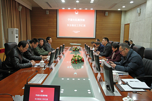为认真贯彻省市安全生产电视电话会议精神,落实省、市教育主管部门关于加强校园安全工作的相关工作要求,12月22日,浙江省教育厅校园安全管理处主任科员曹建国率督察组来我校检查指导校园安全工作,督察组成员还有宁波市教育局学校安全与体卫艺处处长章敏杰、浙江工商大学保卫处副处长罗国平、浙江工业大学保卫处副处长方天永。