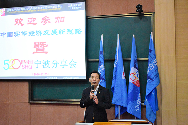 活动最后,“520生活圈”发起人、华项科技董事长钟湘作了题为《中国经济形势及“520生活圈”模式分析》的报告。他认为,“520生活圈”通过改变商品的流通方式,重塑商业规则,扶助实体经济,使商业回归实体、走向良序。