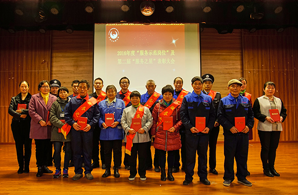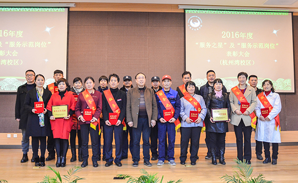 此前,经部门初选推荐、微信平台投票、师生现场投票及活动领导小组最终评审,校园110、医务室、本部校区维修科、本部校区招待所、本部校区第三食堂、杭州湾校区校卫队、杭州湾校区宿管团队、杭州湾校区外围保洁组、杭州湾校区沙县小吃商铺等集体获2016年度“服务示范岗位”荣誉称号。车队、本部校区外围清洁工、本部校区巴比汉堡店、杭州湾校区维修班组、杭州湾校区第一食堂等集体获“服务示范单位”提名奖。章优芬、王瑞君、周菊萍、晏巍、李伦荣、蔡康桥、陆文涛、王明国、王冲海、李仁林、刘孝东、邹秀娟、周孟琼、陈焕军、丁爱娟、阮华芬、王成德、郑传真等同志获第二届“服务之星”荣誉称号。叶雅敏、张安康、徐洪国、陈晓东、陈立秀、卢素兰、王明祥、华赛男、周同秀、黄菊丽、章登申、钟光桥、周婉儿、陈智萍、王永强、王小弟、冯建儿、王峰等同志获“服务之星”提名奖。到场领导为获奖单位和个人颁发了奖状和证书。