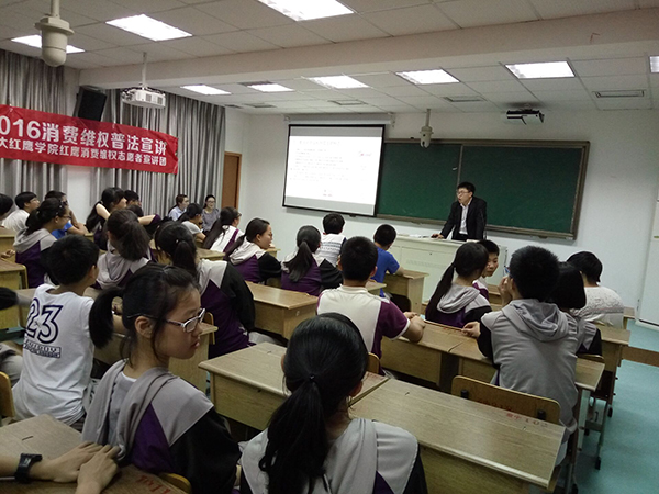 我校“红鹰消费维权宣讲团”是一支以大学生志愿者为主体,致力于提高公众消费法律素养和消费维权意识的志愿者组织。该宣讲团秉持“事前防范”理念,努力通过帮助公众“学法、知法、懂法、用法”,从源头上消减消费风险和纠纷。宣讲团成立至今,已义务为学校、企事业单位、社区进行消费维权普法宣讲三十余场,直接受益对象超万人次。形成“小学版”、“中学版”、“高校版”、“老年版”、“商家版”等针对不同受众群体的“订制式”宣讲模式,并以“专业严谨、形式生动、贴近生活、注重沟通”的宣讲风格,受到公众广泛喜爱和一致好评。