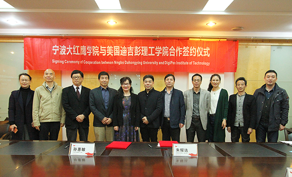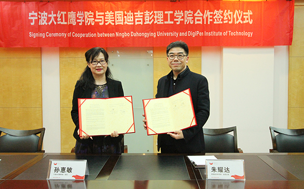 校长孙惠敏与美国迪吉彭理工学院首席运营官朱耀达(右一)签署合作协议