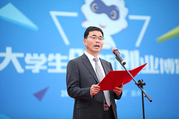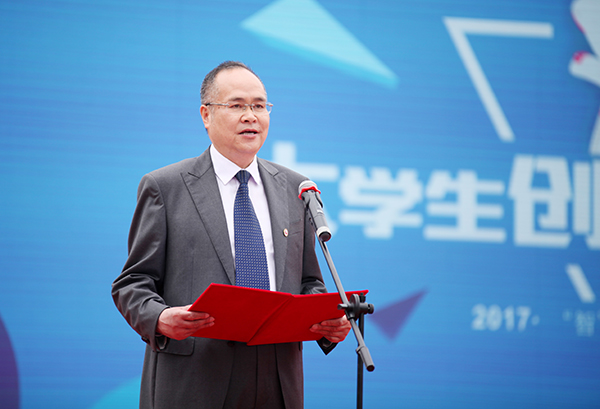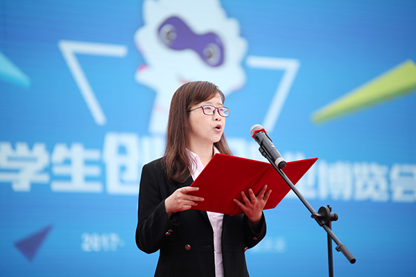 王云儿致开幕词,他强调,我校高度重视创新创业教育,积极打造各类资源平台促进学生创新创业。举办创新创业博览会是学校为拓展创新创业校内实践平台,全面提升学生创新创业能力和素质而作出的一项重要决策。师生们在亲身参与创新创业博览会的过程中提升了创新意识和创业能力,校园日渐形成浓郁的创新创业文化氛围。在创新创业博览会这一平台的带动下,过去一年来,学校创新创业教育改革有力推进,成效明显:学校成功承办首届宁波市大学生创业大赛,校企共建了国内首家商业模式实验室,与地方合作共建的望春工业园区大学生创新创业园正式开园,学校大学生创业孵化园和“匠心创客空间”正式启动运营;学校获评“全国民办高校创新创业教育示范学校”,创新创业教改项目获省教学成果一等奖;在省教育厅公布的近四年全省毕业生创业率排行榜上,我校有两年位列全省第一名、两年第二名。他希望,全校师生踊跃参与创新创业博览会,尽情体验其中的乐趣和魅力,充分激发自身创新创业的潜能。同时,他恳请校友们继续关注和支持母校发展,为学校创新创业教育工作持续深入推进献智献策;莅临指导的领导嘉宾和高校同仁多提宝贵意见和建议,共同为全市高校创新创业教育改革再上新台阶而努力。