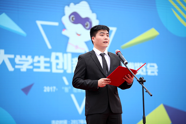 激情的创客方队表演、栉比的创新成果展示、紧张的现场实战路演、激烈的创意作品拍卖、丰富的“双创”论坛交流,彩旗猎猎,人头攒动,琳琅满目……4月20日,一场以“‘智’绘青春‘创’赢未来”为主题的大学生创新创业博览会正在我校体育馆、图书馆、运动场等处重装钜献,由此,拉开了我校第二届大学生创新创业博览会的大幕。