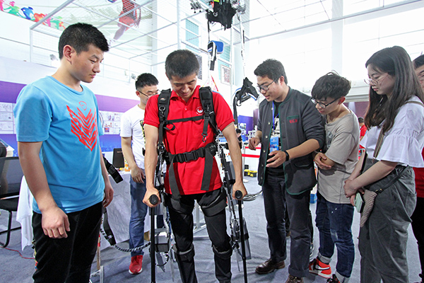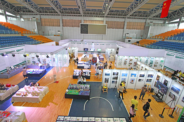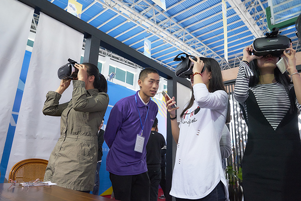 活动当天,在体育馆内主、副展馆,学校以二级学院为单位设立了创新创业成果展示台,我校师生自主研发或设计制作的半自动协力骨骼系统、三维自由轨迹数控工具机、数控硬币分拣机械手、手持式自动送锁螺丝机、VR虚拟成像体验系统等,令大家争相体验;3D打印模型、手工剪纸、古法扎染、泥金彩漆等文创作品更是琳琅满目。