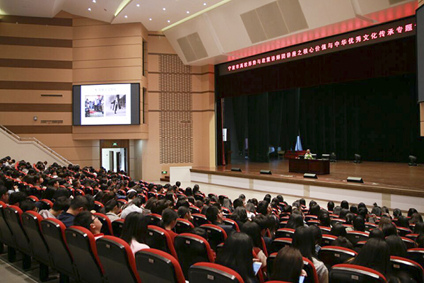 与此同时,市高校“形势与政策”宣讲团成员、我校中国主流文化研究所所长、人文学院常勤毅教授在杭州湾校区大礼堂为全校2015级、2016级学生干部上了一堂精彩的形势政策理论课——《核心价值观与中华优秀文化传承》。他例举大量历史名人和老一辈革命家脍炙人口、感人肺腑的典型事例,通过生动的图像和音乐资料,深入浅出地解读核心价值与中国优秀文化传承的主题,解读习近平总书记关于弘扬中国优秀文化,培育和践行社会主义核心价值观的论述蕴含的深刻哲理。他强调,核心价值观是每一个民族赖以生存的纽带,是一个国家共同的思想道德基础。去主流化、去价值化、去中国化的艺术,是没有前途的;不能体现核心价值观,不能称之为优秀文化,是无法经得起历史检验的无病呻吟。传承优秀文化,创造新的有生命力的文化,实现中华民族伟大复兴是我们每个中国人的责任与担当。
