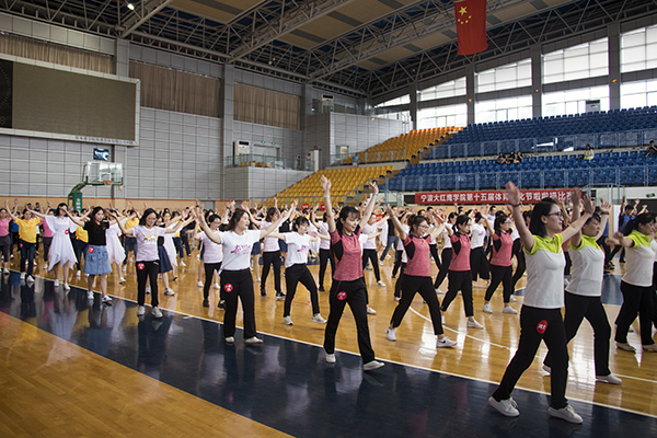 6月15日下午,我校第十五届体育文化节闭幕式暨学生啦啦操、教工排舞比赛在体育馆主馆举行。副校长许锁迪、校长助理何秋叶出席仪式。参加闭幕式的还有相关职能部门、各学院党委有关负责人,各分工会教师代表及各学院学生代表等。