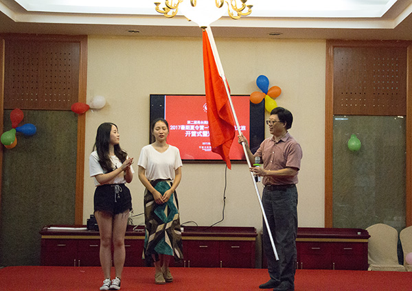 高振强为夏令营活动授旗并致辞。他首先代表学校对台湾师生的到来表示诚挚欢迎,并向大家简要介绍了宁波的历史文化、经济发展及融入“一带一路”建设情况。他说,此次夏令营是我校举办的第二届甬台高校学子交流活动,开展此项活动是为了加深我校学子与台湾学子间的情谊,增进台湾学子对祖国文化的了解和认同。他预祝本次活动取得圆满成功。
