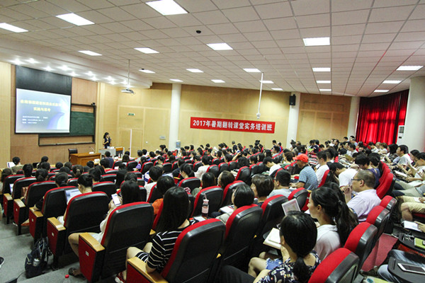 据悉,第三期暑期翻转课堂实务培训班从7月5日开始,至9月3日正式结束,培训内容包括课程认定与资源建设讲座、翻转课堂评价、示范课观摩、移动教学APP体验、场地使用培训及体验、小组分组交流说课等。