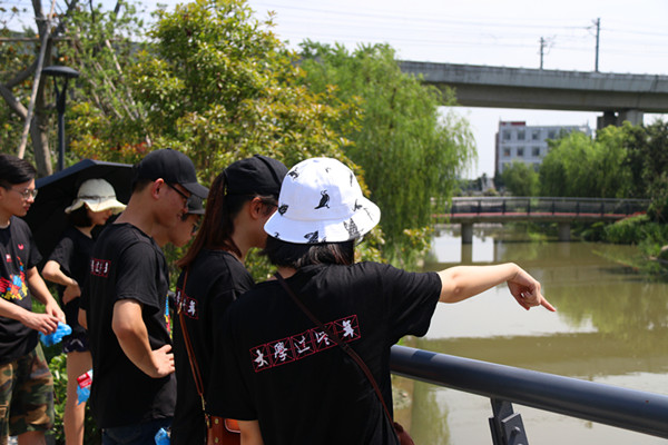 实践刚开始,“鱼鹰”实践团把目光放到了最为基础的活动:巡河、收集河道垃圾、走访居民发放调查问卷等工作。团队成员分别从徐家漕站和高桥站对后塘河进行直线式巡河,巡河方式主要分成对河道附近的垃圾清理,观察河道附近是否有污水排放,附近居民是否会向河道内倾倒垃圾。