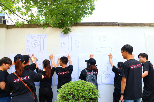尽管是在最热的时间进行墙壁粉刷彩绘工作,尽管团队的美术功底不及一些专业的人员,但是成员们热情高涨,粉刷过程中不乏有路人驻足围观。