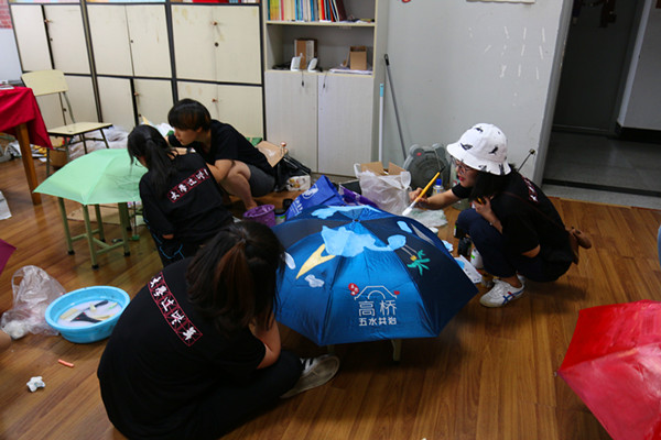 不仅如此,“鱼鹰”团队还将“彩绘”思路搬到了雨伞上,因为伞跟雨水息息相关,当人看到该团队在伞上画的彩绘便会联想到该团队活动的主要内容和思想,团队的成员们充分发挥了自己的艺术才能,让原本纯色单调的雨伞得生动美丽。