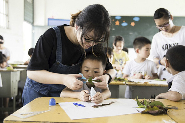 脸谱绘画课上,孩子们在实践团成员的指导下,中西艺术合璧,勾画出了极富青春活力色彩的面具,钢铁侠、奥特曼、圣诞老人……各类卡通人物的面具在孩子们的欢声笑语中诞生了。树叶本是我们身边随处可见的物什,实践团成员通过树叶画的教学模式,提高了小朋友的动手能力,又让他们认识了身边的植物,同时还锻炼了小朋友的设计能力和创新能力。泥巴是孩子们钟爱的手工材料之一。实践团为此特意开设软陶课,让小朋友学会欣赏陶泥制作,学习制作软陶小手工。孩子们在课堂上尽情释放自己的天性,发挥自己的想象力,做出了许多自己设计、亲手完成的小工艺品。