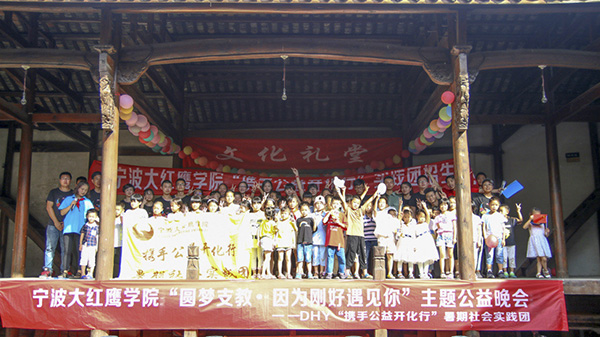 7月14日,实践团成员在村头镇文化礼堂举办一场“圆梦支教,因为刚好遇见你”的文艺汇演活动,他们和参与表演的孩子用优美的舞姿和歌声演绎着别样的青春,用滑稽的语言和动作为广大乡亲带去欢乐,用深情的语言和歌词诠释了人世间最真挚的感情。当天下午三点整,汇演正式开始。在实践团队员的带领下,孩子们表演了刚刚学会的军体拳;欢快的《兔子舞》乐曲响起来了,小演员们短短两天时间里掌握了所有舞蹈动作要领,并达到了较高的整齐度;朗诵《少年中国说》激情四射,将孩子们的朝气蓬勃表现地淋漓尽致;小品《教子》话语幽默风趣,赢得了满堂喝彩。最后,实践团全体成员演唱的一首《开化不会忘记》将现场气氛带入高潮,全场掌声雷动。