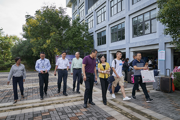 校领导孙惠敏、王云儿、林长兴、李羽、沈云慈、许锁迪、高振强、蒋天颖、何秋叶、李向东等早早来到杭州湾校区巡视指导迎新工作。他们走到新生报到服务点问询新生入学报到情况,走进食堂和新生寝室与新生、家长亲切交谈,了解新生入学报到、食宿生活等情况。“老家是哪里的?”“一个人来的,还是家长送到学校来的?”“对学校的印象怎样?”“刚到学校是否适应?”“食堂饭菜合不合口味?”“同学,今天风大,你穿得这么单薄,学校准备了姜汤,喝杯暖暖身,小心着凉!”校领导们殷切的问候、朴实的话语,让新生和家长感觉特别暖心。